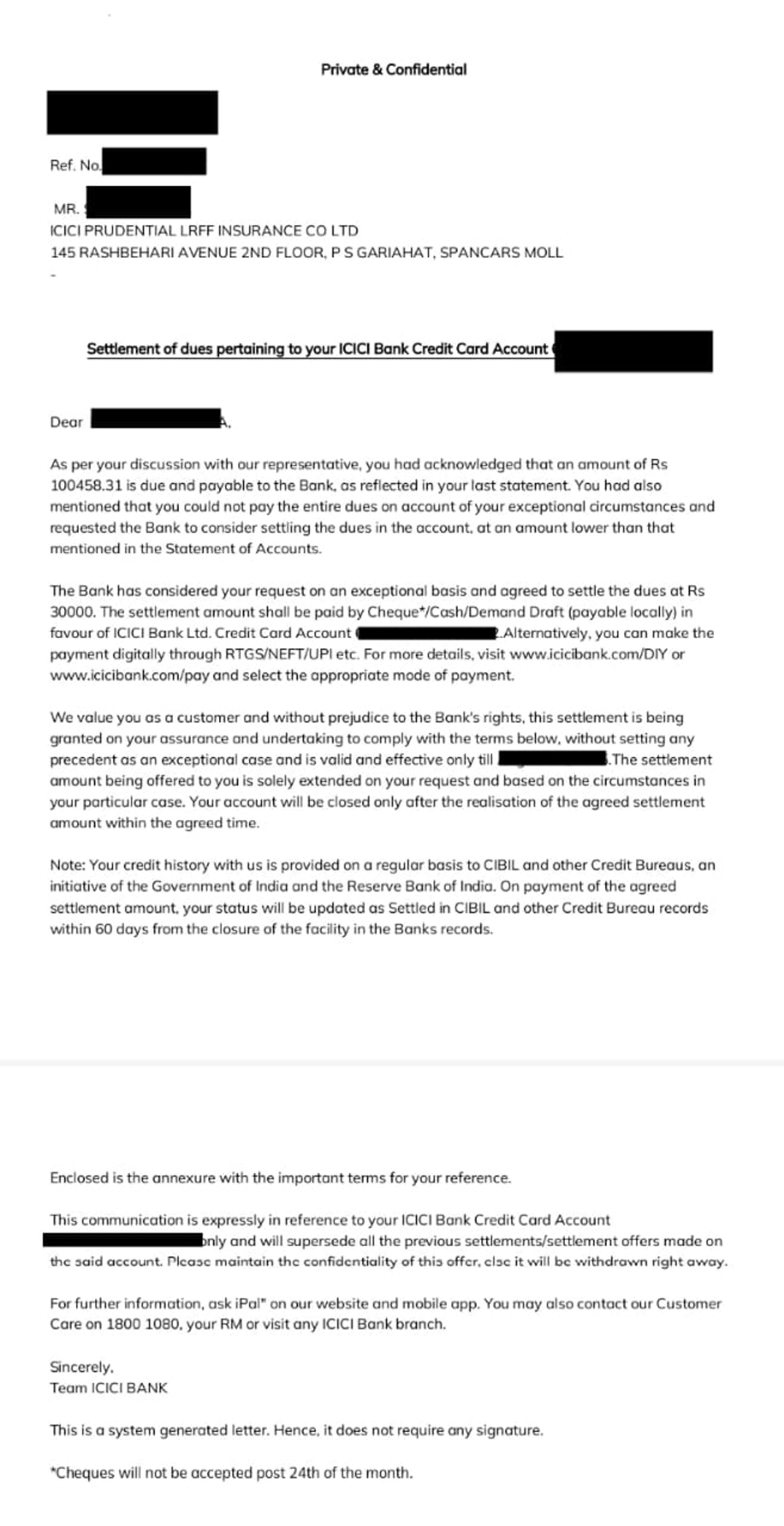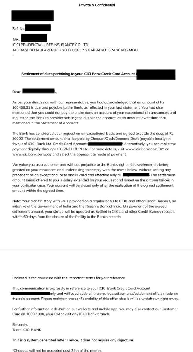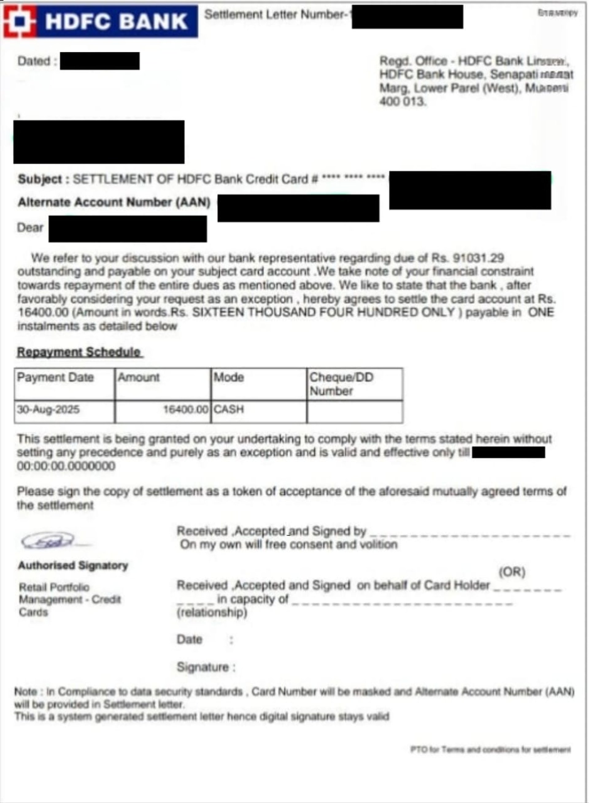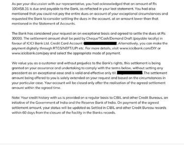 Loan settlement is a process where the bank or NBFC agrees to close your loan for a reduced amount due to genuine financial hardship.
