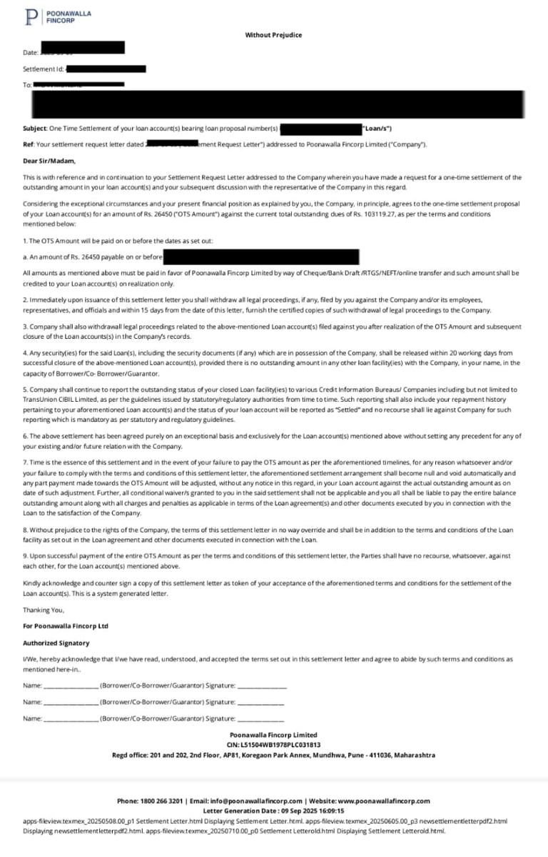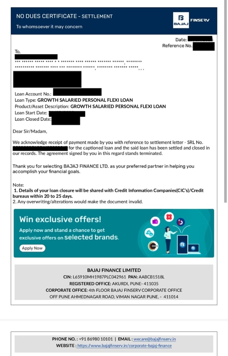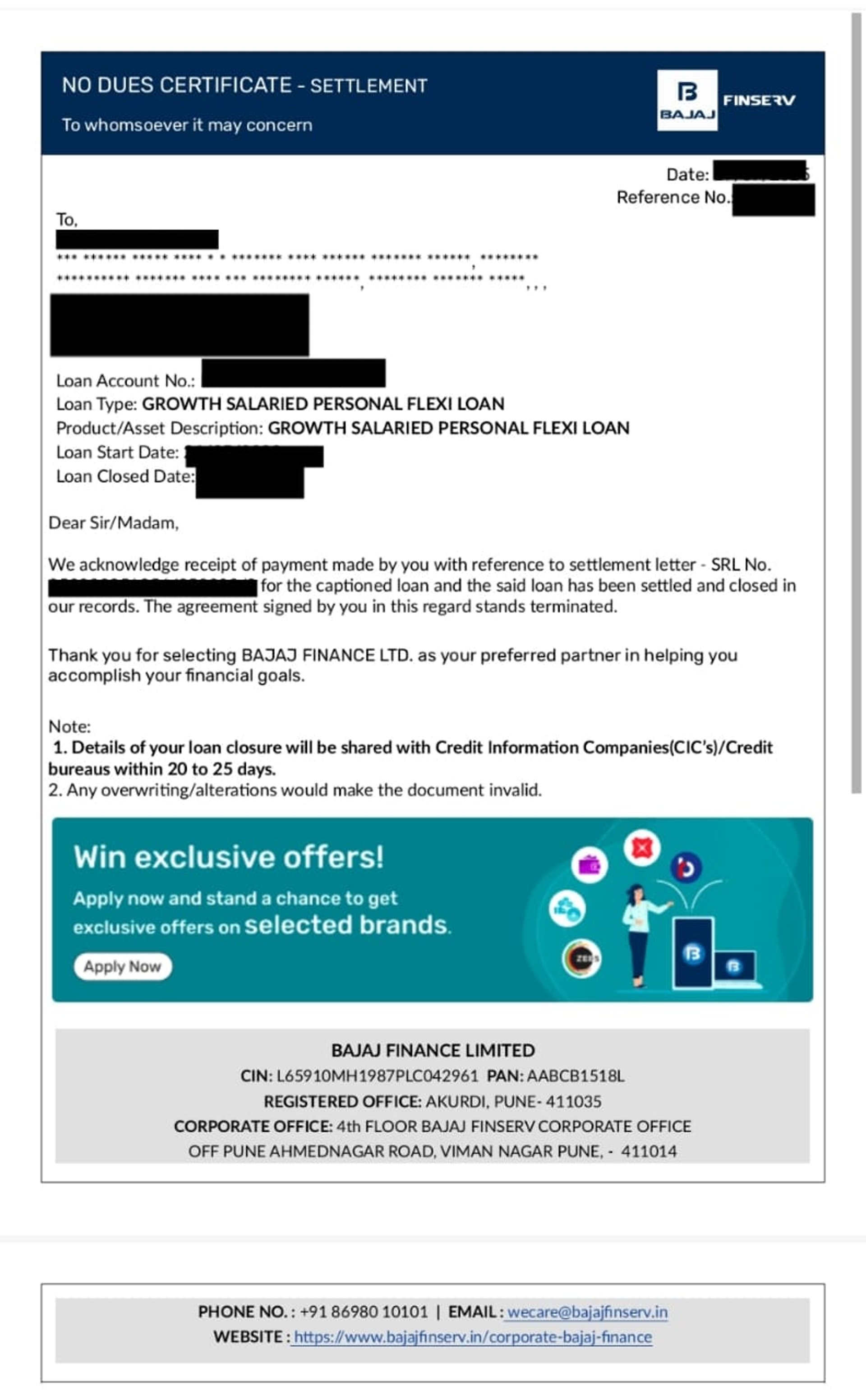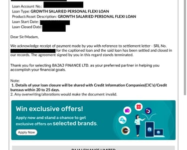 We ensure proper loan closure by securing NOC, closure letters, and updating your account status correctly after settlement.